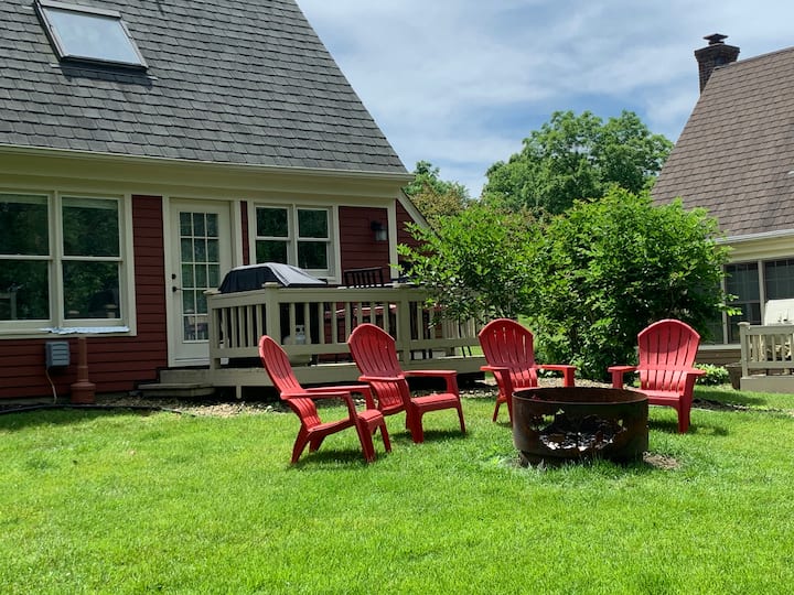 We now have a fire pit in the backyard with 4 chairs. Just bring along some firewood!! We kindly ask that you put the chairs on the gravel next to the deck when not using them. The landscapers will not cut the grass if the chairs are in the way.