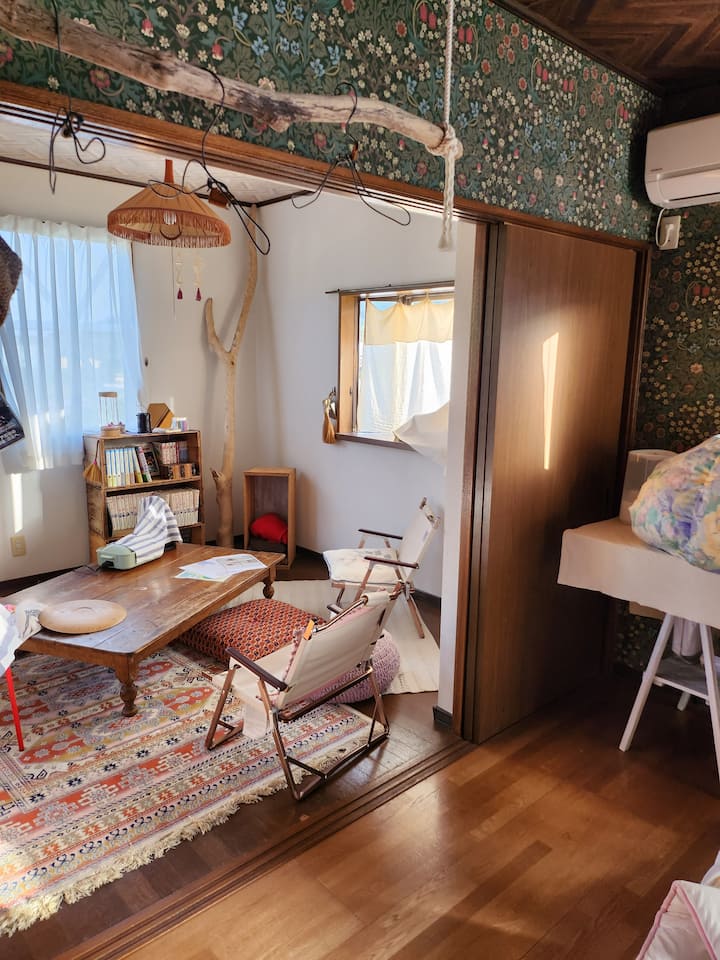 I usually work at a nearby office.Because of this, I often come home around 18:30.If you check in earlier, we'll prepare the key so you can message us with you.They also have a hat shop.I usually also teach hat and bag making.The special feature of my private lodging is that you can experience hat making.Of course, please wear the hat you made on your future travels and bring it back to my house!