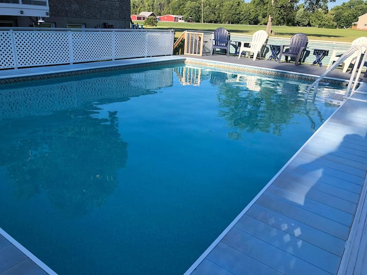 We spent many a weekend gathering the field stone in the wooded area that surrounds the house. Dad drove the tractor and flat bed. Mom, Tina and I tagged along and would help choose and load the perfect pieces! Even our dog and cat would follow in the adventure! Our home has always been the gathering place for our large extended family. It is not unusual to have a baseball game going on in the side yard, a game of corn hole, volley ball, or horseshoes. Of course there are the card players on the porch and the coolers packed with beverages!