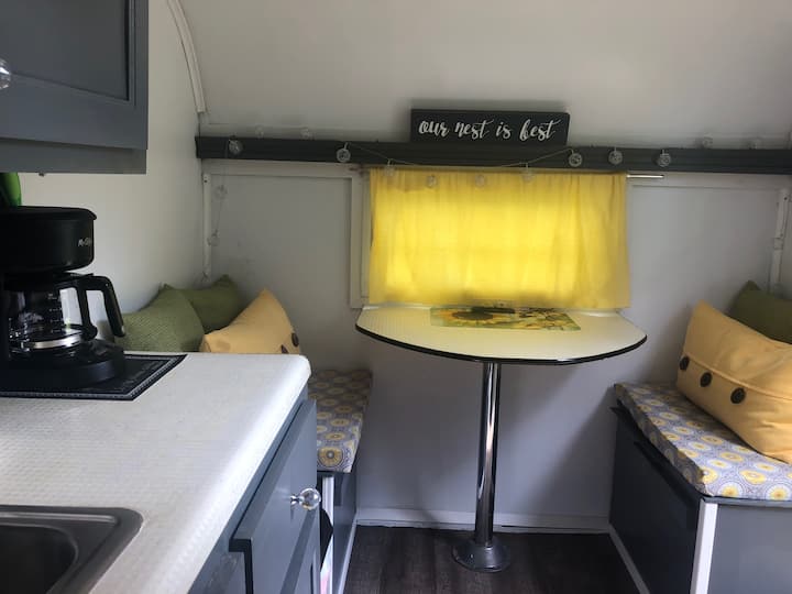 Tweety Bird camper pet is friendly