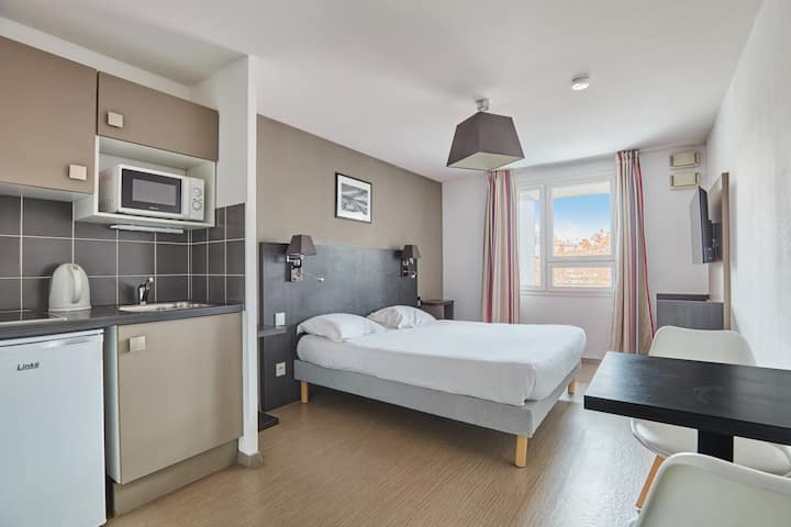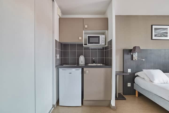 You will love your stay in Apart'hotel Le Dôme where our 33m2 space is conveniently located. Start your day off right with the breakfast service on-site for €14.00/adult, €7.50/child (4-12 years old), and no charge for children under 4. If you’re travelling by car, there is underground parking available on-site from €10/night.