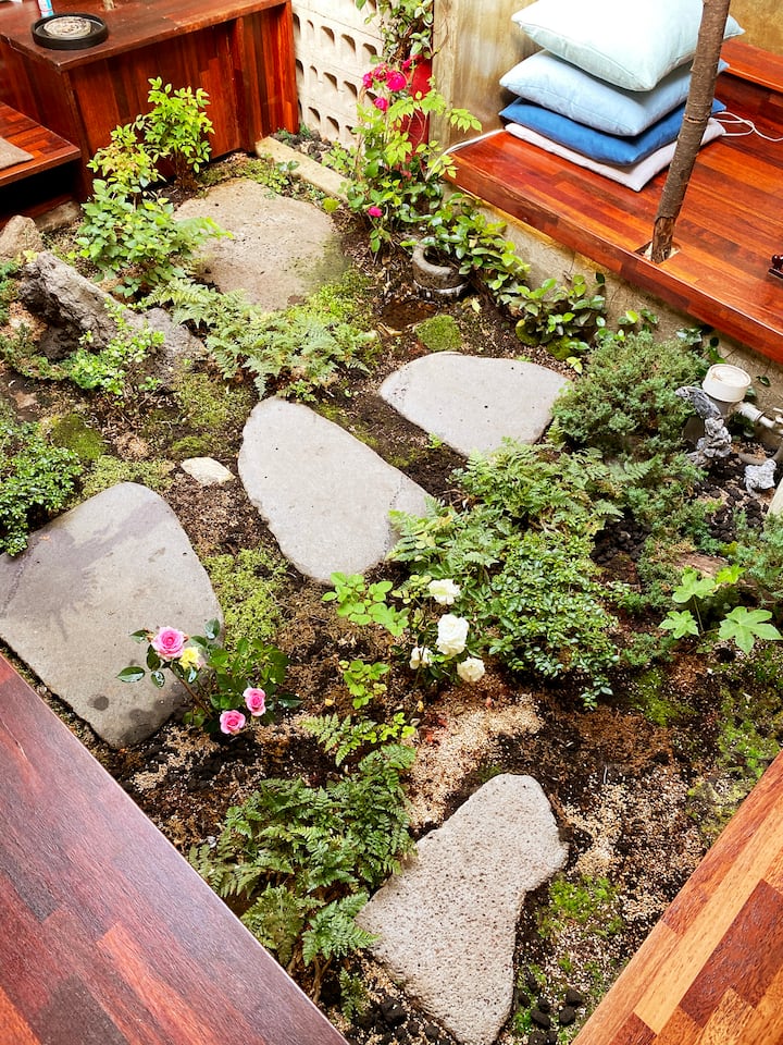 -Viva La Vida is a structure with a yard in between the main room and the shower room, but it was a big concern that the yard and garden could not be completely indoors due to the restrictions of the building law.