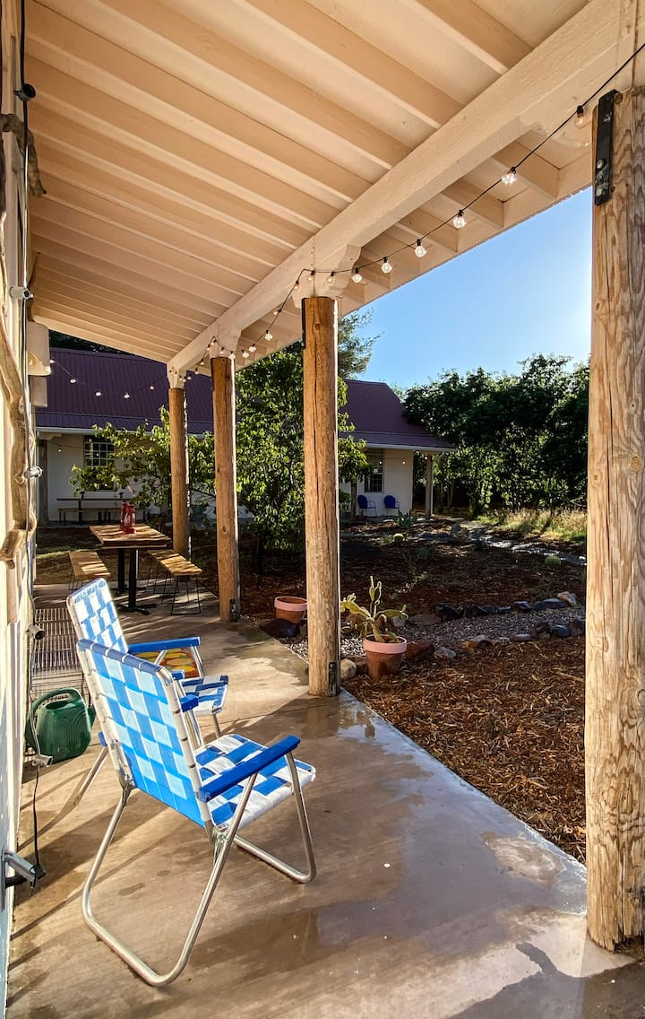 OUTDOORS: Long front porch with outdoor table for relaxing, enjoying a meal + huge communal fire pit in the yard. Wood can be purchased at the Patagonia Market 1 block down 3rd Ave or in the town of Sonoita at the gas station and/or liquor store. Sonoita, AZ is 12 miles north on HWY 82.