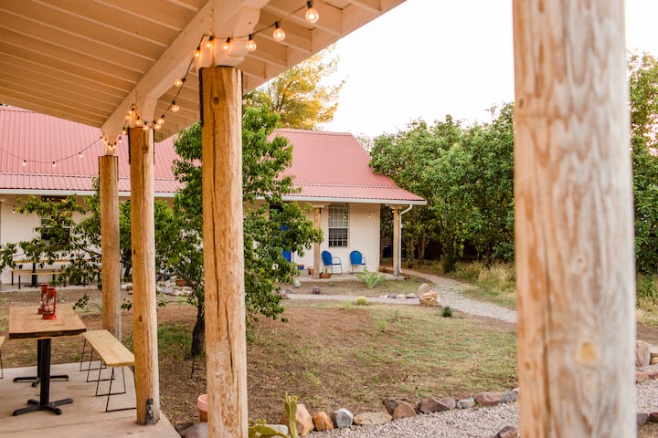 Welcome to The Raven's Nest at The Gravel House! This small, wood/stucco construction home is the original seed lab and starter house for local non profit, Borderlands Restoration Network. Built in 1997, the space has been completely remodeled and is equipped with a 4 burner gas stove, Hario coffee pour over station, handmade juniper butcher block countertops, natural gas fireplace and covered outdoor patio space. In the summer months, open all the windows and let the fresh air & breeze keep the place cool. In the winter, stay cozy & warm by the fireplace. Cook a meal in our kitchen with everything from handmade stoneware pottery to cast iron pans. We are Chef's ourselves & we take the importance of having everything you need in a kitchen very seriously. We hope you will enjoy dining on the porch with views of the fruit orchard, as much as we do. The property has 17 Asian pear trees, 7 apple trees & 1 peach tree. Enjoy the communal fire pit shared with our second listing, the Straw Bale at The Gravel House. You never know, you may make lifelong friends over a cold beer and/or a meal. It's an incredible place to soak up the beautiful, star filled sky of the Borderland region.