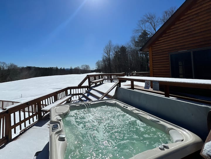 Your perfect day: After a fun day of skiing, swimming or exploring gorgeous scenery nearby, relax in the spacious sauna, pool or the outdoor hot tub, all the while enjoying views of the alpine field and the mountains! Then look forward to fine dining in one of many excellent restaurants in Manchester or BBQing on the deck - the choice is yours! After dinner go to the outdoor fire pit to roast marshmallows with kids or fire up the fireplace. Put on your favorite music on our quality Hi-Fi music system either on the deck or in the living room to complete the relaxation. Or spend your downtime watching sports or movies on one of the four large screen TVs.