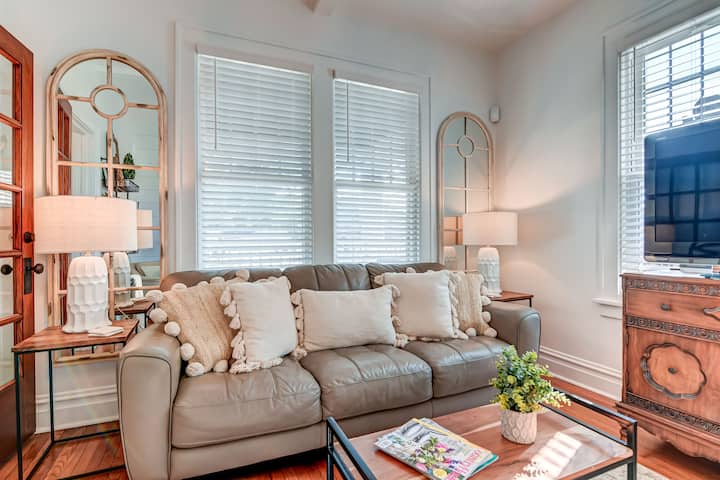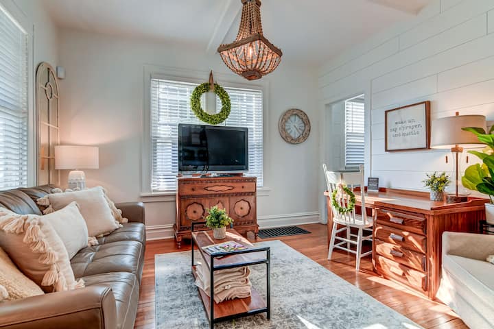 The vintage farmhouse-chic, boutique-inspired decor of this fully furnished 4-square is filled with rustic-meets-contemporary features and cozy areas throughout for reading and relaxing. Experience why many guests rank 809 Haven as one of the best Airbnb properties they’ve ever stayed in.