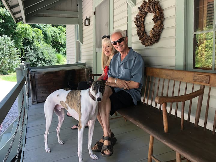 Currently, Ron resides in the Kingsley Grist Mill annex next door, with his artist/photographer/collaborator wife, Linda K. Evans and their international rescue greyhound Sid the Kid.