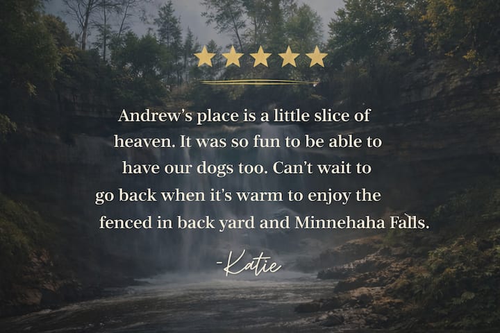 "Andrew's place is a little slice of heaven. It was so fun to be able to have our dog too. Can't wait to go back when it's warm to enjoy the fenced backyard and Minnehaha Falls." - Katie