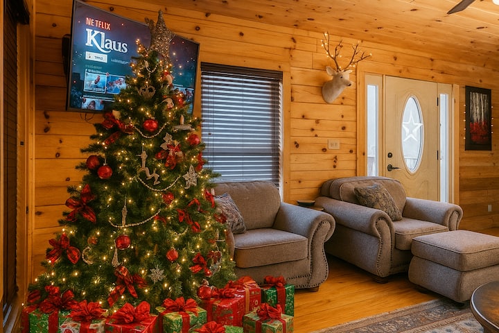 When you stay in this home you have access to every room and amenities of the home except for a small locked owner's closet. You have the entire space to yourself and will be given a key code to unlock the front door. The home offers plenty of parking spaces, high-speed WiFi, a full-size washer and dryer, and laptop-friendly workspaces. This recently built cabin is just a two-minute drive to the Parkway.
