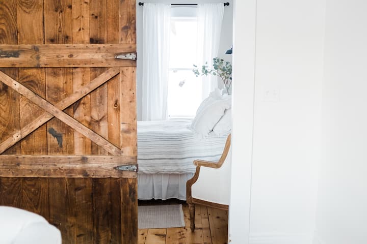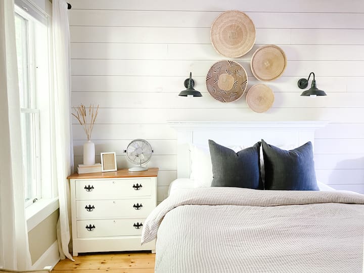 Outfitted with amenities that include: raised garden beds and micro-vineyard, outdoor fire pit & grill, patio dining, Sonos wireless speakers, and Smart TV (with complimentary YouTube TV subscription). In addition, we've partnered with local businesses & brands including Ursa Major all natural hair & skincare products and Carrier Roasting artisanal coffee, available for guests to enjoy during their stay. We offer luxury bedding and towels, compliments of our storefront, Farm Home Marketplace, located on Main St. In addition, we circulate fresh, clean air, inside the home with the Molekule Air purifier and Dyson Pure Cool Fan and follow a strict cleaning protocol, using all natural cleaning products within our home.