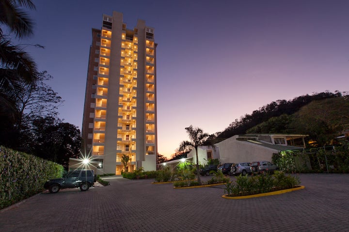 5 bedroom, 5 full bath. Jacuzzi in master bath. 2 huge balconies. One private and the other overlooks Jaco. 3 bedrooms facing the ocean. 10 meters to the beach. 100 meters to the middle of Jaco. Next to Croc's Casino. Guests are allowed.