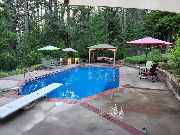 The Chaffalu home (3000’ elevation) is perfectly situated near Bear Valley Resort (27 miles) and Downtown Murphys Village (10 miles), known for their charming Main Street inclusive of high quality cuisine, boutique shopping, historic architecture and boasting over two dozen wine tasting rooms. Year-round outdoor activities include hiking, mountain biking, swimming in the private pool, local public-access lakes, skiing/snowboarding/sledding at Bear Valley Resort, 9 miles to Calaveras Big Trees State Park, approximately 2.5 hours to Yosemite and 3.25 hours to Tahoe.