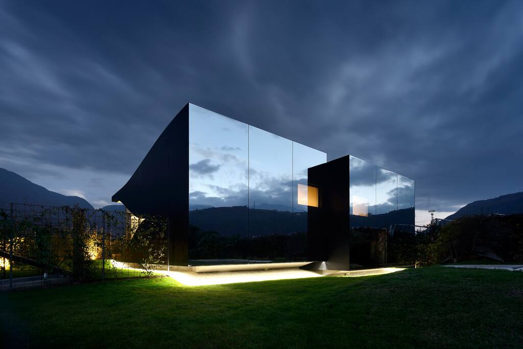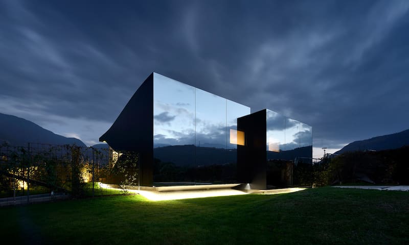 The Mirror Houses are a pair of vacation homes, set in the marvellous surroundings of the South Tyrolean Dolomites, amidst a beautiful scenery of apple trees, just outside the city of Bolzano.