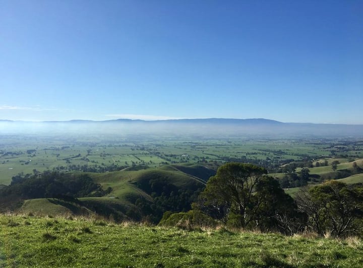 We are so delighted you have chosen to stay at Kookaburra Cottage at Mount Worth, and look forward to meeting you and your family/friends and helping you explore our farm and this lovely part of Victoria. It is a beautiful place, whether you enjoy bushwalking, bike riding, birdwatching, finding local breweries and wineries, or just relaxing with a glass of wine and a book on the deck of our cottage with its amazing views. Or inside by the cosy fire on a cold day. Don’t forget to bring a warm jumper as the air can be cool at our 500m altitude.