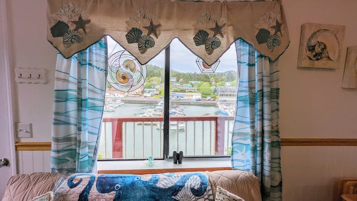 Indulge in this cozy studio apartment with an amazing view of Depoe Bay, the World's Smallest Harbor! Ocean themes featuring creative octopus decorations and marine life collections adorn every room and make the Octopus Hideaway a favorite place for anyone looking to enjoy the local attractions and then come back to peace and comfort. The ocean is across the street (Highway 101) and there are many restaurants and shops within easy walking distance.
