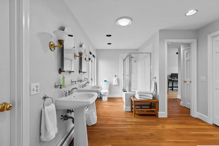 In 2009 we bought the farm and about a year later bought the Schoolhouse. It was after the purchase and a complete remodel we learned about vacation rental homes and we thought we'd give it a shot. We immediately fell in love with the idea and not a year later, bought another fixer upper in our town of Little Compton. We were blessed with many wonderful guests and because of that, we were able to purchase the Samuel Church Estate in 2016, and the John Dyer Loft in 2019. In 2020 Kristin was able to obtain her real estate license and now We have now started to manage properties and have other beautiful large homes in Little Compton also available.