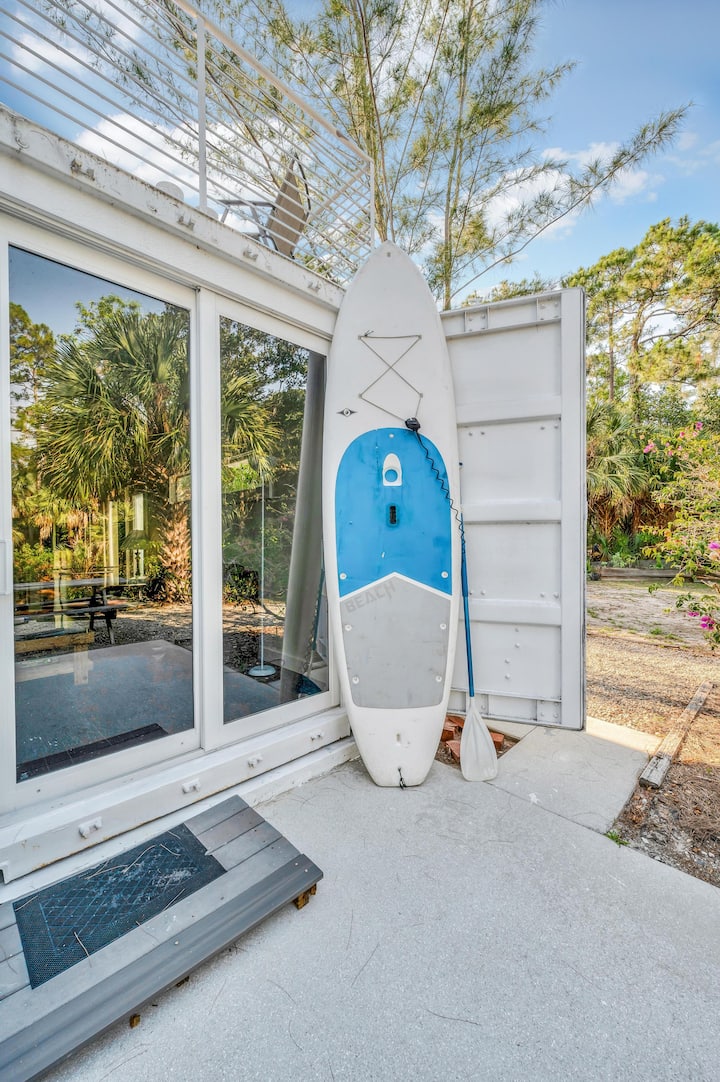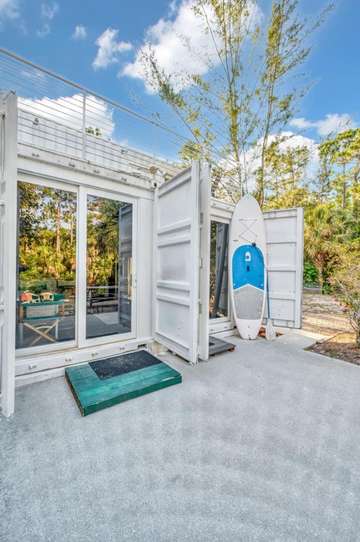 Headwaters Jupiter is a unique 4BR, 2BA eco-retreat on the headwaters of the Wild & Scenic Loxahatchee River, across from Riverbend Park. Built from up-cycled containers, it’s the only approved residence of its kind in the area. Enjoy river views, lush landscaping, patios, and trails. Upstairs rooms share a bath and patio with coffee nook. Free use of bikes on site & free or discounted kayak rentals with trip planning included. Total privacy—only staff or vendors allowed.