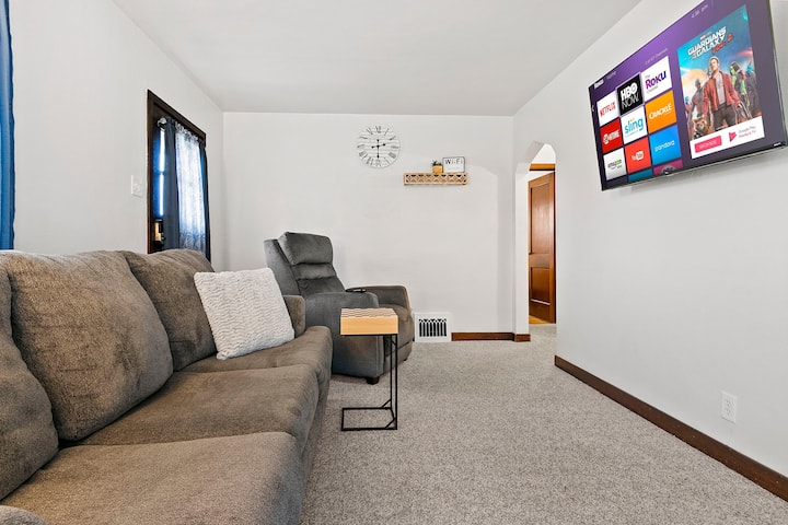 This house may be small (only 670 sq ft) but when I found it I knew I had to buy it to share with others! It’s a small and cozy house in a beautiful neighborhood in Green Bay and only 1/2 a block from Marquette Park! (And also close to the stadium and the new convention center!) The house has great Spectrum internet speed if you need to work from the house! And both the living room and 2 bedrooms have smart TVs with cable!