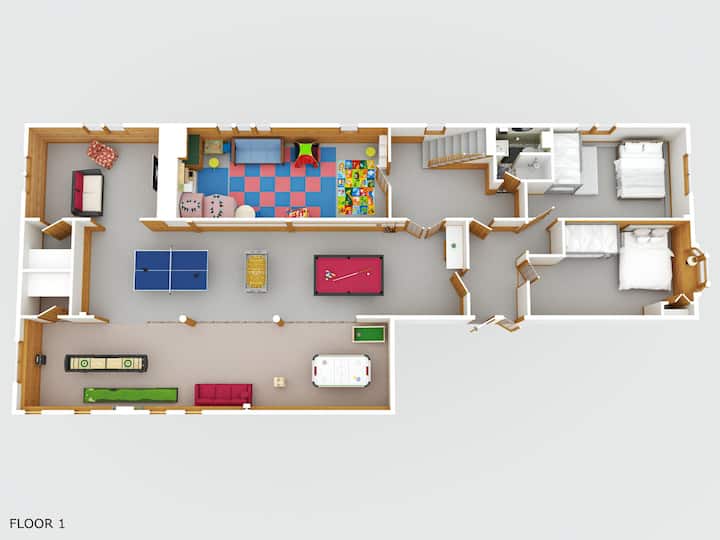 Located a short walk from the houses, closer to the main road. Whether you call it the lodge, clubhouse or entertainment center you'll have two floors with 5000 sq ft of pure entertainment!!!