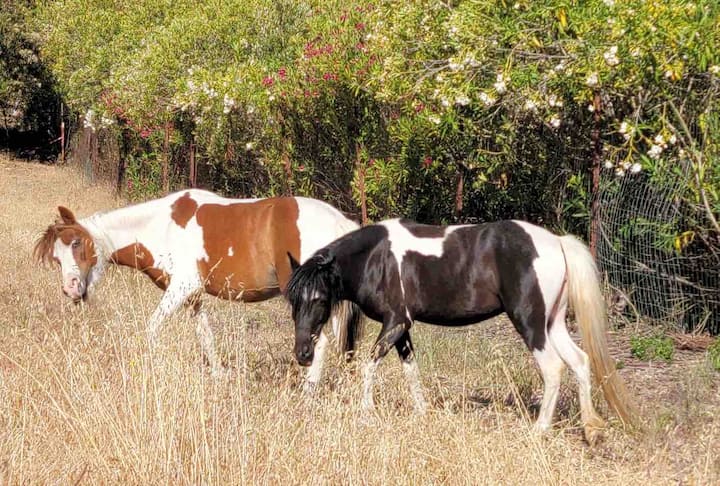 We love to see the world. I'm a proud Rotarian, on the Santa Clara County Sheriff Search and Rescue team, home brewer, SCUBA diver, hang glider pilot and sourdough bread baker. We always enjoy sharing our animals and hobbies with our guests!