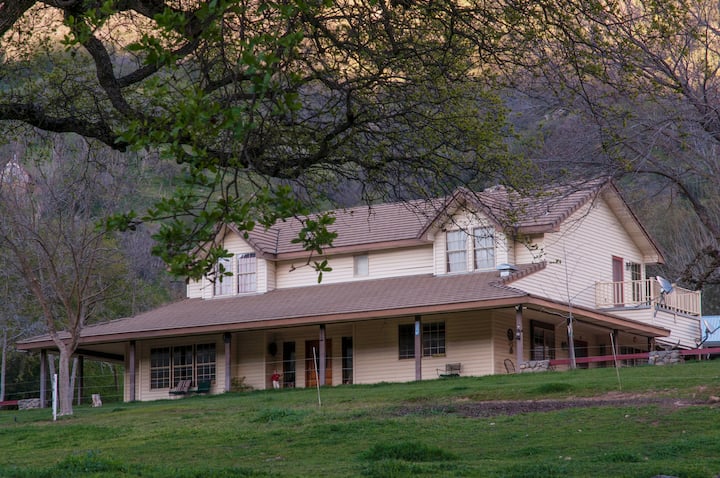 The North Fork of the Kaweah River runs by the pasture across the road. The owners will not allow any of our guests to access their swimming hole there, but you can access the river about 3/4 mile back towards town at the big turn out area by the Lions Club Arena.