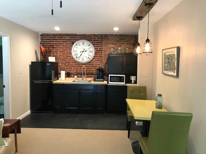 The Airbnb suites are located in the warehouse. They have private entrances and provide guests with no to low interaction with the property owners.