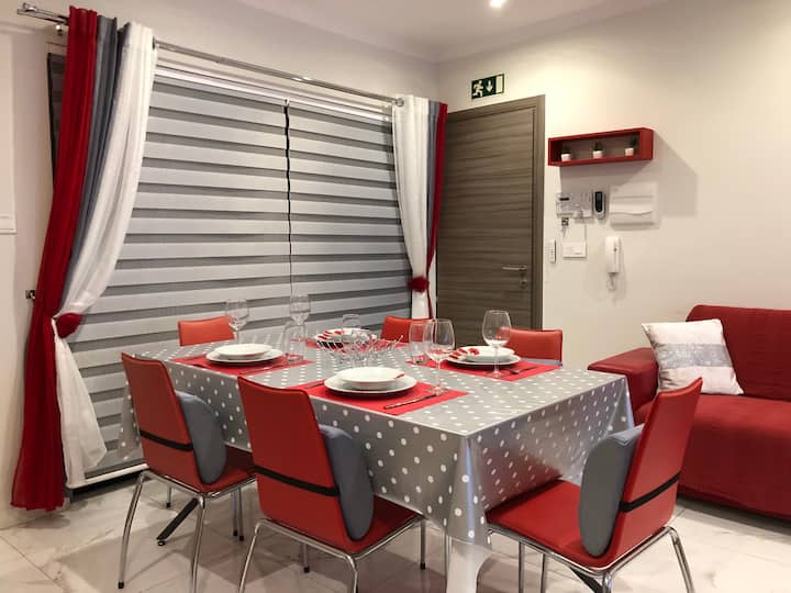 Our cool and comfortable 2 bedroom Penthouse with exposed brick has a true village feeling! It comfortably fits 5 guests and is centrally located on a quiet street in Marsascala and is just few meters away from Beach and Centre!