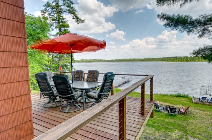 Secluded Northwoods lake cabin on 4 acres near Hinckley. BREATHTAKING views. Excellent swimming & fishing. Amazing cedar sauna (added charge). Seasonal outdoor shower. Large deck, firepit, grills, & fireplace (Oct-May). Hiking, skiing, ATV trails, casinos, and St Croix River nearby. Game room w/pool table, foosball, poker table, ping pong, air hockey, & more. Lake has sandy swimming area by the dock. Kayaks, canoe, & row boat. Ask about pontoon rentals. No light pollution=so many stars!