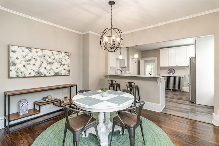 Located in the heart of downtown Valparaiso, guests will love this updated, historic charmer! Walk to fabulous restaurants, local shops, or breweries & wineries in minutes. This unit has been fully updated and fully stocked with room to sleep 6. You'll be 25 minutes from the beaches of Lake Michigan/Indiana Dunes National Park, an hour from Chicago, and close to quaint towns and apple/berry picking orchards. This space is perfect for families & friends who want to relax or adventure outdoors!