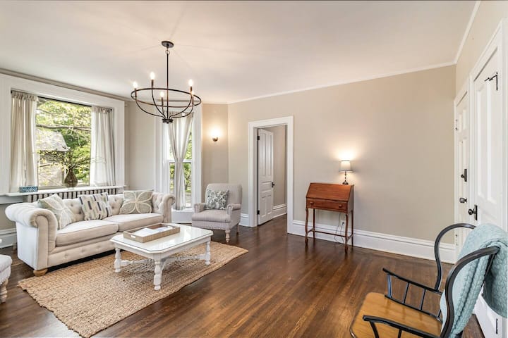 This unit is an apartment, within a historic home, which hosts two other long-term tenants. After entering a shared foyer and going up a set of curved stairs, guests will have their own dedicated space completely. The only other shared area is the basement laundry room. The apartment itself (bedrooms, kitchen, living areas, etc) is yours completely and is not shared with anyone outside of your group. Keyless entry allows an easy self-check-in, and you will be greeted with a manual of suggestions for local restaurants and fun things to do nearby.
