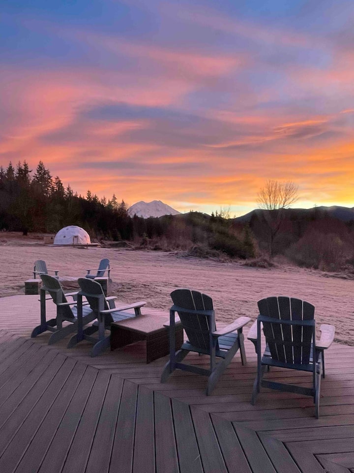 Outside, enjoy stargazing or your morning coffee from our Adirondack chairs, facing East toward the breathtaking Mt. Rainier. Lawn games offer entertainment for kids and adults alike, while our paths to the orchard and out through the hay fields allow for adventures, without even leaving the farm.
