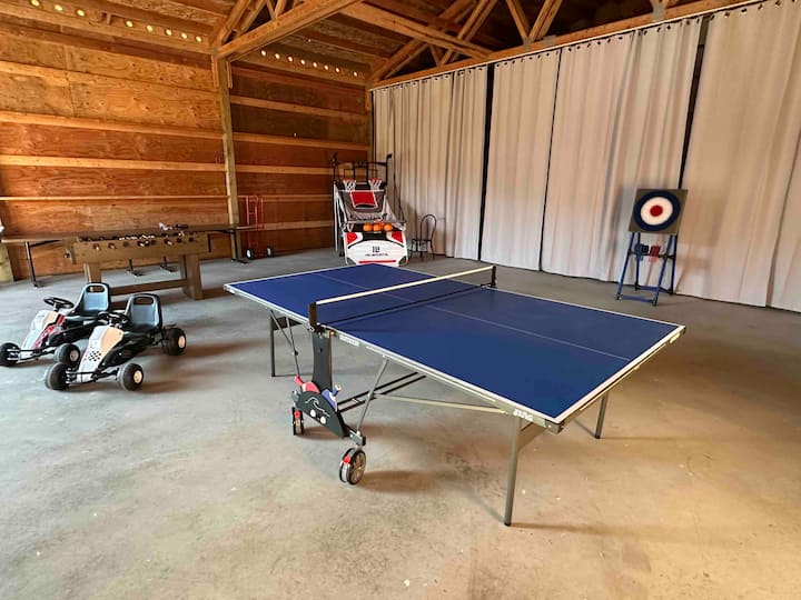 Our 50+ acre property also has an additional rental unit (The Stargazer Dome) onsite, located at least 400 hundred feet away from the Farmhouse, so there's plenty of private space to enjoy. The walking trails, driveway and Game Barn are shared spaces with other guests.