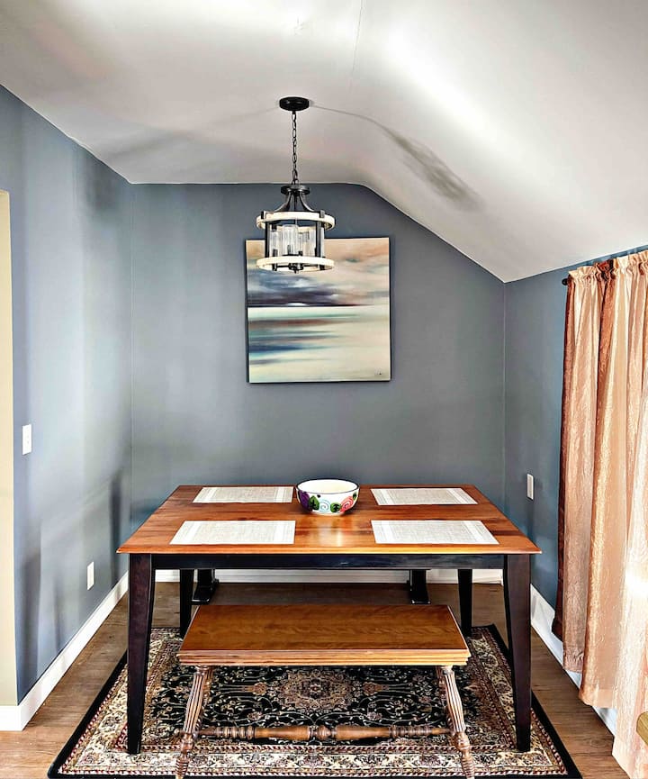 Full size •upstairs• private apartment for TWO in Somerset’s historical district - just steps away from small town restaurants, bars & shopping. Peaceful & cozy. This is a one bedroom space with a full size bed, there is also a living room/reading area, dining room, full kitchen and full bathroom. Includes WiFi & you can sign into your own streaming service on the tv. Please refer to the check-in instructions for a map on how to find our private parking lot!