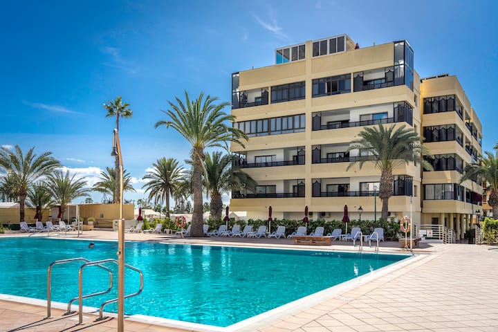 This sunlit 140sqm retreat offers air conditioning, a dedicated workspace with strong WiFi, and a fully equipped kitchen. Perfect for a luxurious and relaxing getaway just a stone's throw from the famous Maspalomas dunes.