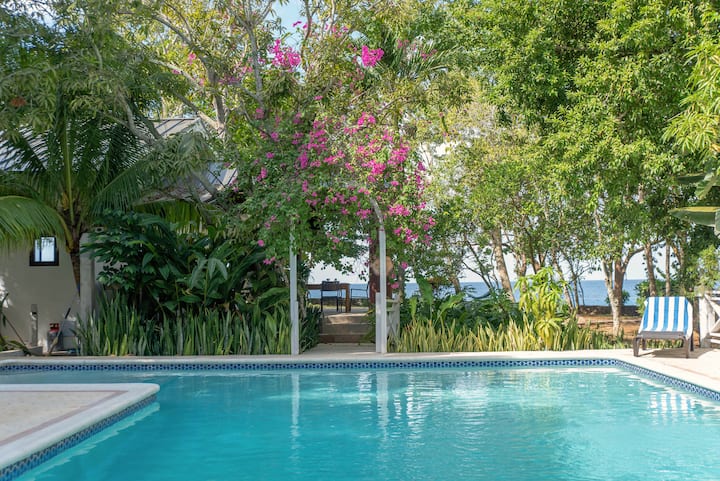 Fenced/gated house featuring 5 bedrooms, surrounded by 2 acres of lush garden, a gorgeous pool, a tennis court and private access to a stunning coral reef.