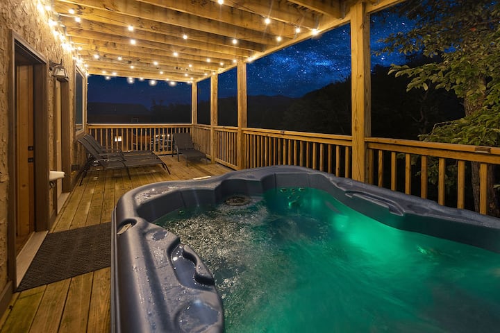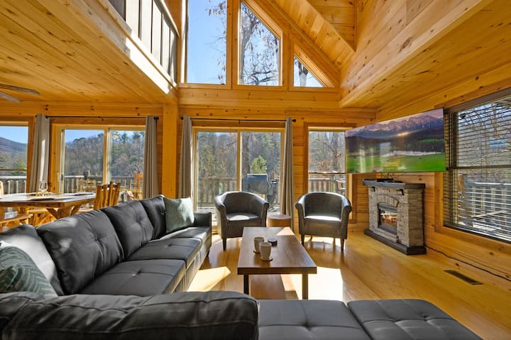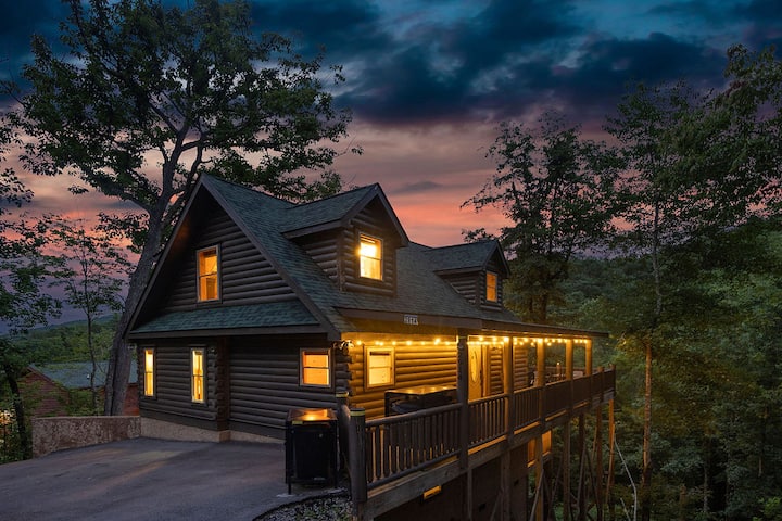 Smokies/Log cabin/HotTub/Sauna/view/Kingbed/Arcade