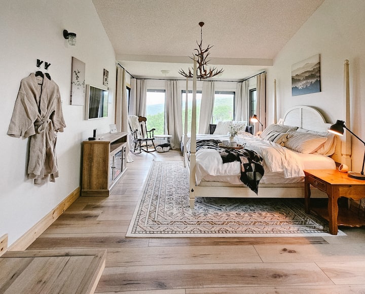 Escape to The Mountainview Lodge—your cabin in the clouds with epic views! Soak in the starlit hot tub, gather fireside, or head out for nearby thrills. Feel worlds away while just minutes from Andrews, rafting, hiking, casino, dining + more.