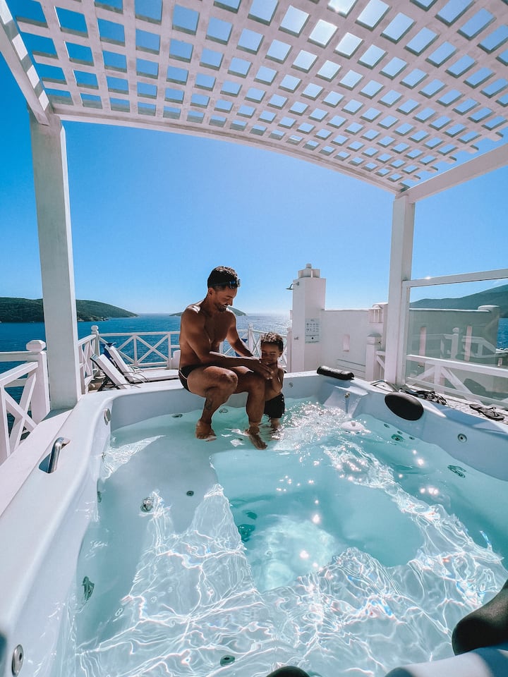 Relax with the outdoor shower and jacuzzi.