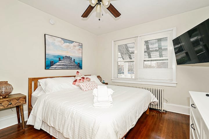 Step into the ground floor of our beautifully restored 1920 Beach Cottage Duplex, where coastal charm meets cozy comfort. Located just 50 feet from the Chesapeake Bay, this spacious 2-bedroom, 1-bath unit offers a peaceful seaside retreat with modern amenities and a touch of history.