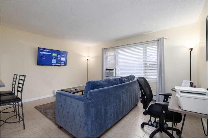 A cozy queen bed, extra bedding, fully equipped kitchen, and all the comforts make you feel at home. Modern amenities and a newly refreshed bathtub 🛁is great for unwinding.