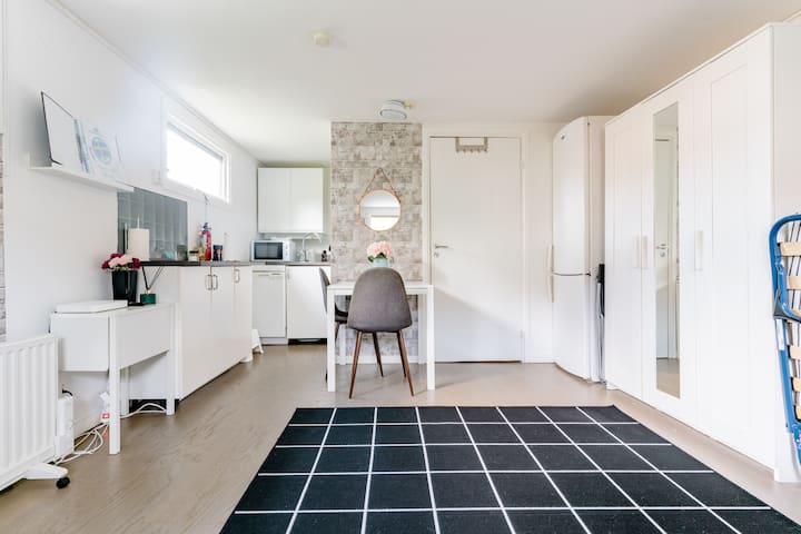 5 mins to buses #35 & #1 (13 mins to Trianglen)