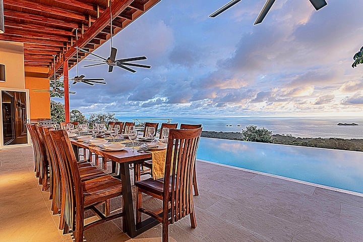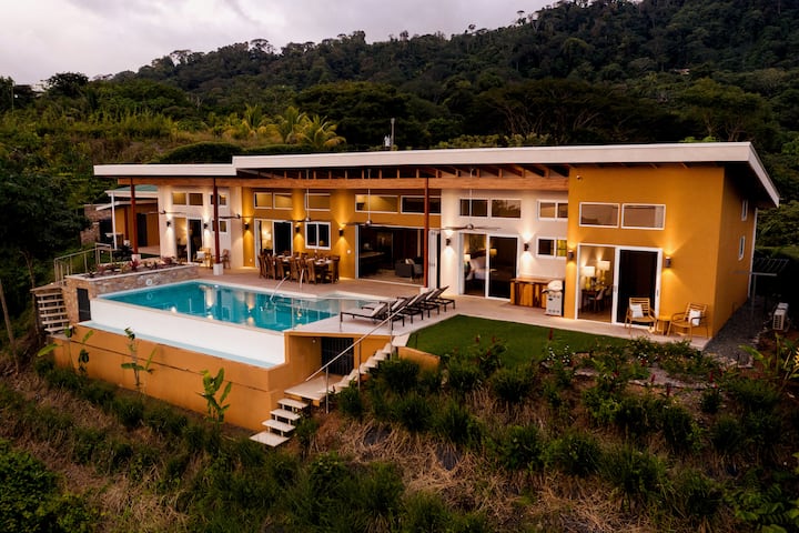 Casa Ballena is a modern oceanview retreat for up to 14 guests, perfect for multiple couples or families. Located 7 minutes from the beach highway in a gated community (4x4 required), it offers 4 air conditioned bedrooms with en suite bathrooms for privacy and convenience, 3 lofts, huge pool, workspaces, WiFi, smart TV, and gourmet kitchen. Enjoy stunning views, concierge services, and easy access to beaches, restaurants, and tours. Ask us about private chef, spa, and curated adventure bookings!