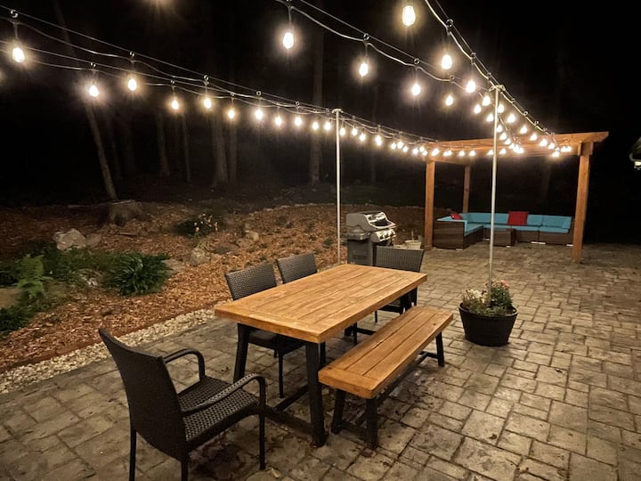 Step outside onto our large private backyard patio—a true gem, with string lighting that creates a magical ambiance when the sun goes down. Take a seat at the outdoor dining table and enjoy a meal under the stars.