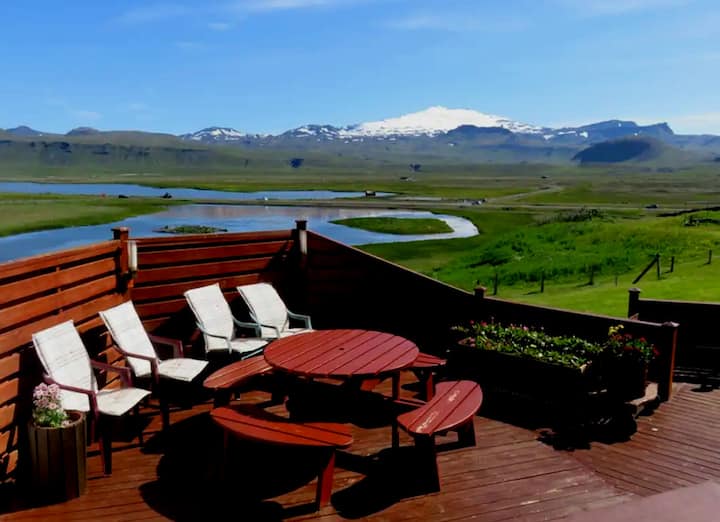 Our place is about living in a small fishing village embraced by nature and the Snaefellsjokull magical mystical Mt-Fuji like mountain, volcano, glacier. Our view of Snaefellsjokull is second to none. The view is weather dependent, so longer stays are recommended.