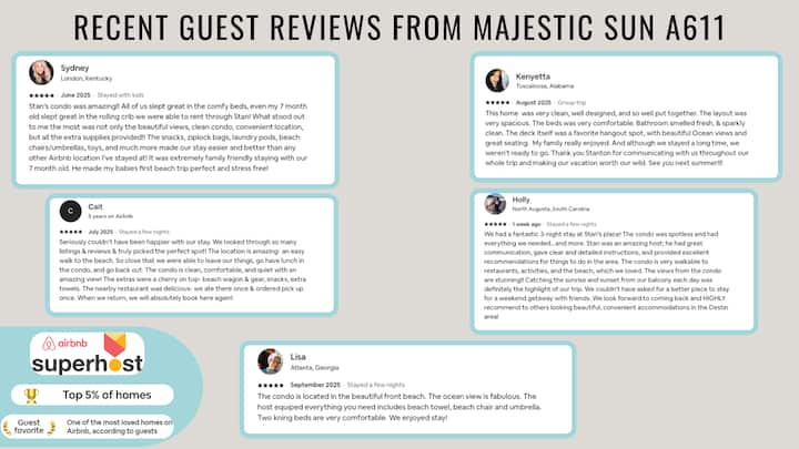✹ My reviews across all my properties support that my #1 goal is delivering an awesome beach vacation for my guests. This starts with a sparkling clean condo and fast, excellent customer service. If you need anything at all, or if something is not right, I am quick to respond! I’ve tried to think of everything that my family and my guests would want in a beach rental. Vacation rentals are my passion, and I am always trying to improve the guest experience so suggestions are welcome!