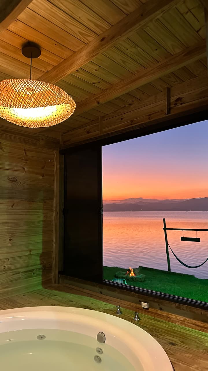 Sunset Cabin - foot in the lagoon + bathtub/jacuzzi
