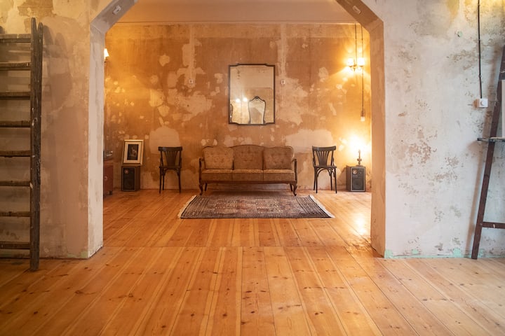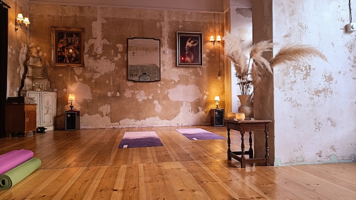 La Bohème is an art space in Schöneberg that serves as a gallery, yoga studio and tango dance school. It is equipped as a fully comfortable flat in the back, but its large open salon will remain with minimal furniture and lots of space for creativity during your stay. You will experience the Berlin art vibe directly in the place of your stay, with possibilities to connect with local artists and dancers and having a class arranged directly for your group of friends.