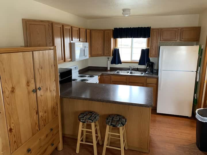 Hello! My husband, Ben, and I are excited to meet you and share our beautiful property with you. We have four seasoned horses and two cats. I run a horse riding program called Rockin’ K Riding Stable where I teach the fundamentals of horsemanship for ages 8 years and up.
