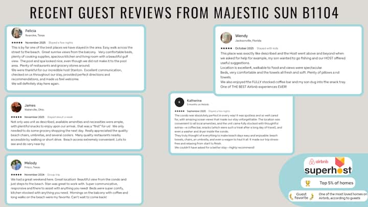 ✹My reviews across all my properties support that my #1 goal is delivering an awesome beach vacation for my guests. This starts with a sparkling clean condo and fast, excellent customer service. If you need anything at all, or if something is not right, I am quick to respond! I’ve tried to think of everything that my family and my guests would want in a beach rental. Vacation rentals are my passion, and I am always trying to improve the guest experience so suggestions are welcome!