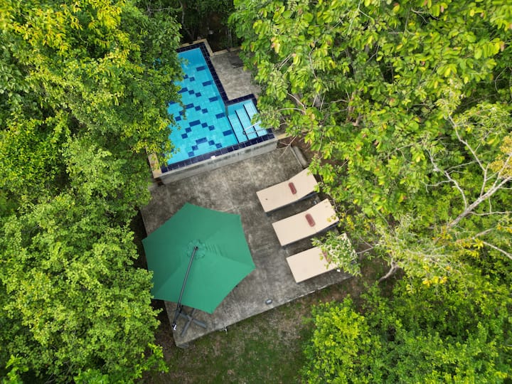 We are situated in Sri Lanka’s dry zone where temperatures can soar to the mid thirties (Centigrade) in the months of April and August. Our 10'x14' plunge pool and outdoor showers are intended for guests to cool off in hot weather.